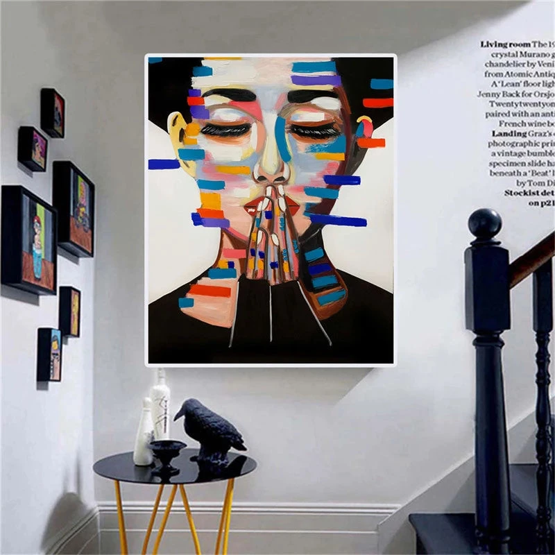 Hereby we introduce you to our newest member of our Hila family, this is Belle! Beautiful and interesting as she is, she holds many mysteries. Can you try to unravel them? With the addition of many colored lines, this painting never gets boring and will fit any home interior effortlessly!