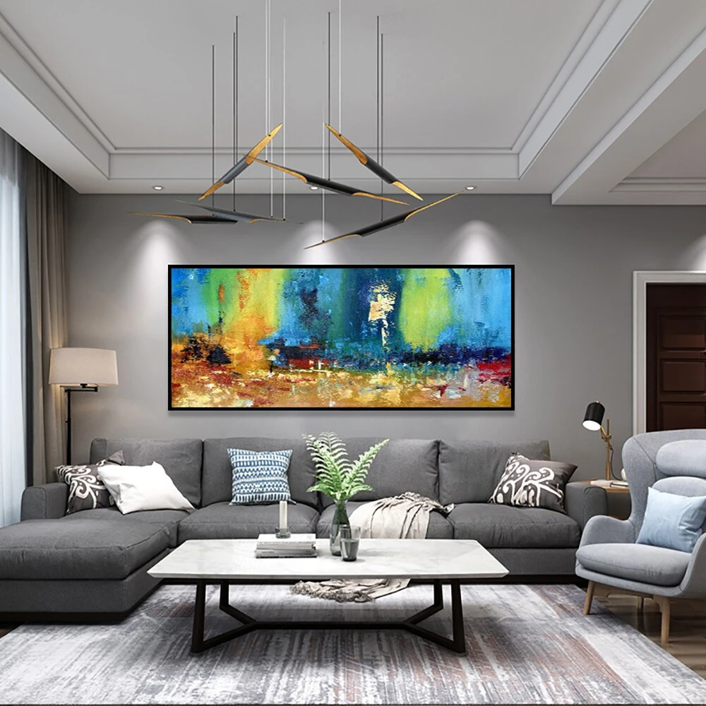 Inspired by the religious city of Bethlehem, this colorful artwork depicts a wondrous scene. The abstract figures and shapes flow into each other in a unique style. Just like like the city of Bethlehem where multiple religions used to live side by side peacefully!