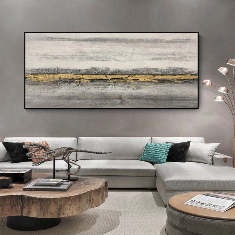 The Golden Riverbank’ is a stunning piece that will add a touch of elegance to any home interior. The gold colors contrast stunningly with the gray background. And because of the subtle tones, you can hang this piece anywhere!