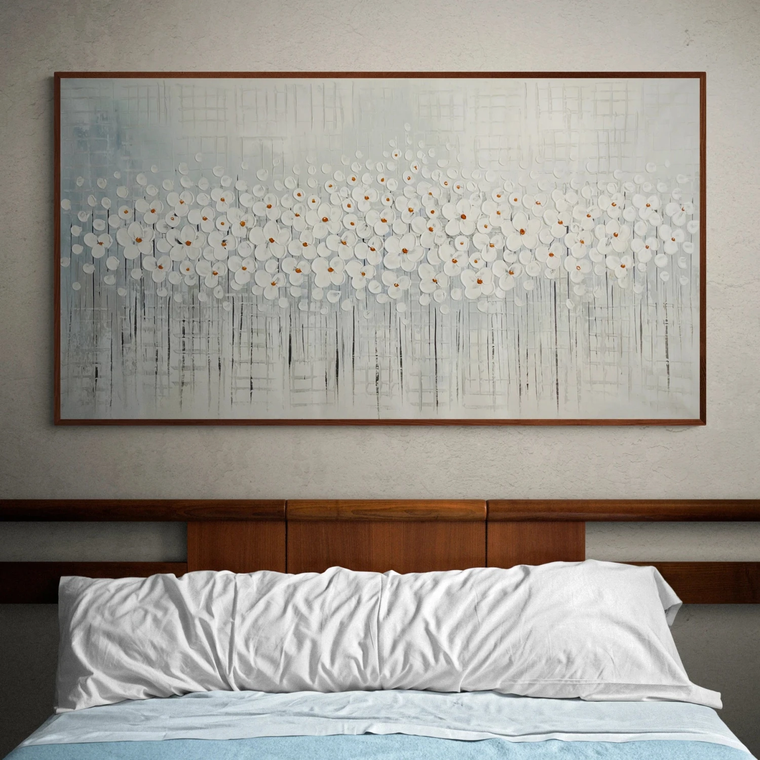 A pair of magnolias always puts a smile on our faces! An amazing array of joyful, white flowers shines together like one rich, white-colored garden. Cheer up your home with this lovely painting!