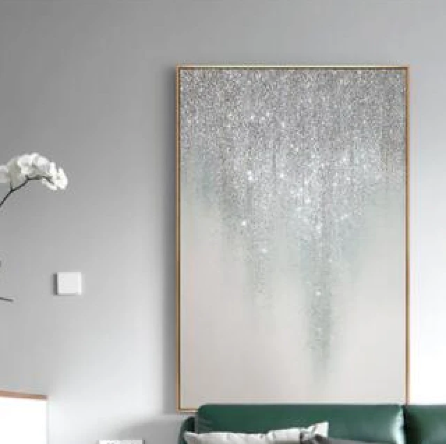 This painting adds a sophisticated sparkle to your decor. Its elegant blend of soft whites and glittering textures creates a serene ambiance that is both modern and timeless.