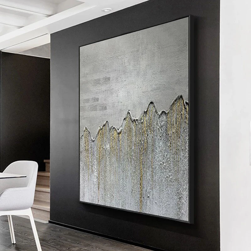The Grey Area, a modern composition, skillfully blends contrasting shades of gray, divided by a central line. Its dynamic style sparks contemplation, offering a unique interplay of tones and movement within the realm of contemporary art.