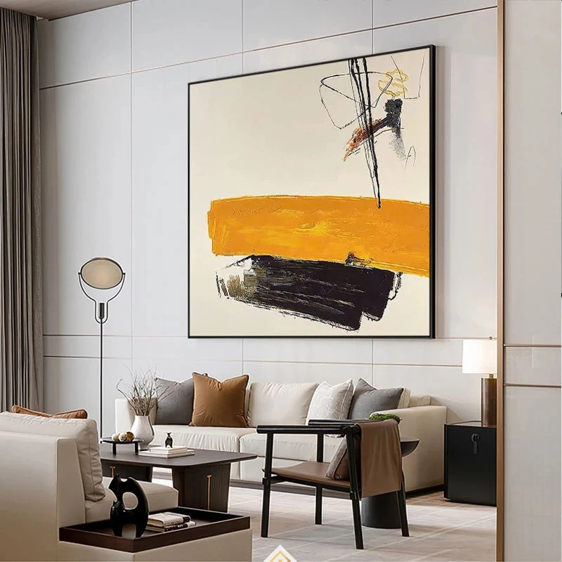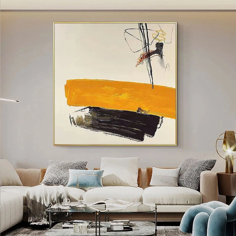 When we look at this wonderful abstract piece, we get this special feeling inside, almost like a positive premonition. The subtle orange and black colors dance gracefully in a unique and attention-grabbing composition.